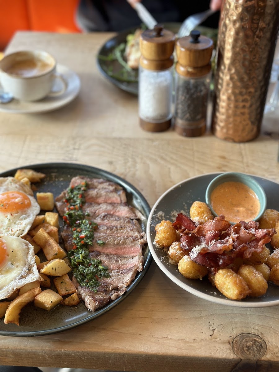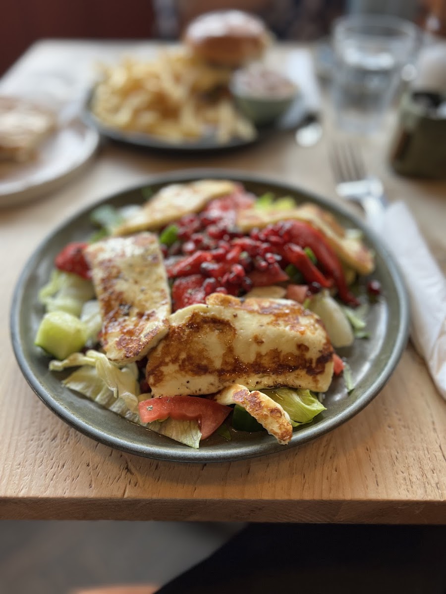 The restaurant offers a fantastic range of dishes that are perfect for any time of the day. For breakfast or brunch, you can indulge in Pancakes served with fresh fruit or opt for a hearty English Breakfast Veggie Plate for a healthier start. Another crowd favorite is the Halloumi Salad, a vibrant dish that pairs well with a refreshing Orange Juice. For something with a little more flair, the Poached Egg Avocado Toast with Halloumi is a must-try.